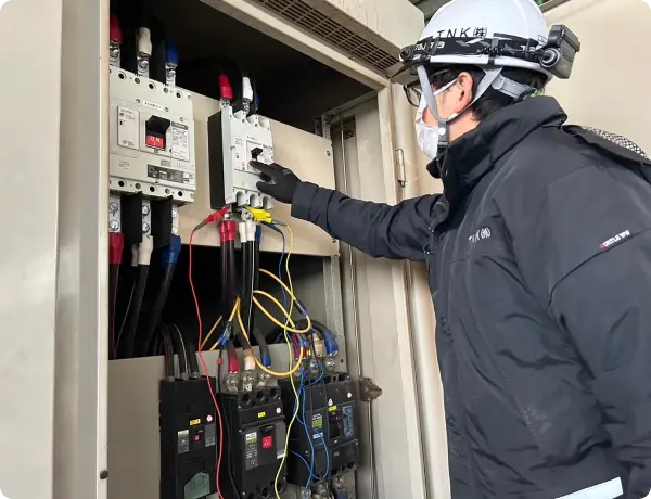 電気設備の設計および施工管理、保守検査までを一貫して担い、GX社会の実現へ貢献しています。